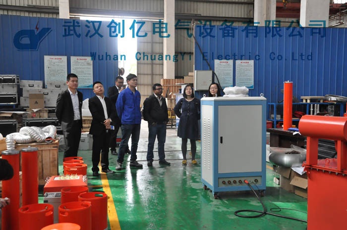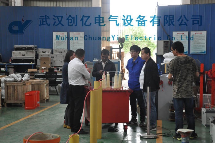 昨日,創(chuàng)億電氣迎來(lái)了印度客戶(hù)Vijay的來(lái)訪(fǎng)。該客戶(hù)在我司訂購(gòu)了一套CYTF-4500KVA/750KV的變電站變頻串聯(lián)諧振試驗(yàn)裝置,而此次來(lái)訪(fǎng)的主要目的是驗(yàn)貨。此次客戶(hù)采購(gòu)此套設(shè)備主要是用于400KV GIS設(shè)備的測(cè)試。