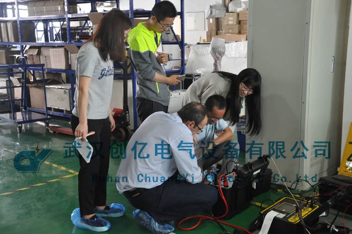 日前,南京海興在我司訂購一批CYHL-200 智能回路電阻測試儀、CYKC-6A 高壓開關(guān)動特性測試儀以及CYYD 系列 工頻耐壓等一批設(shè)備。由于此設(shè)備用于巴西,近日,其巴西地區(qū)負責人前來我司進行產(chǎn)品驗收工作,并學(xué)習(xí)設(shè)備的使用。