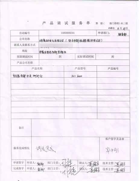 2014-08-30  山東豪酈電氣有限公司進行調試服務,調試產品:CYKC-6000變壓器有載開關測試儀(實際是CYKC-5000變壓器有載開關測試儀)