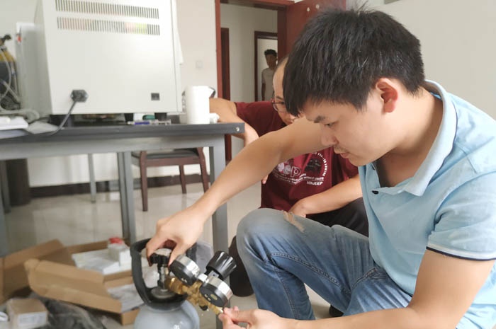 在現(xiàn)場對試驗設(shè)備清點、組裝,之后在客戶的組織安排下開始培訓(xùn)。培訓(xùn)主要圍繞試驗設(shè)備開機前的準(zhǔn)備工作展開,指導(dǎo)客戶如何做堿液配置、氣路連接、檢漏等內(nèi)容。