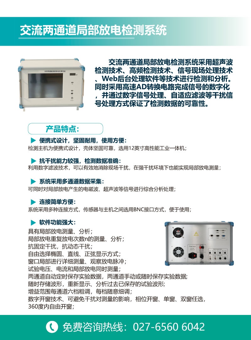 系統(tǒng)采用多通道數據采集:可同時對局部放電產生的電磁波、超聲波等信號進行綜合分析處理 ;